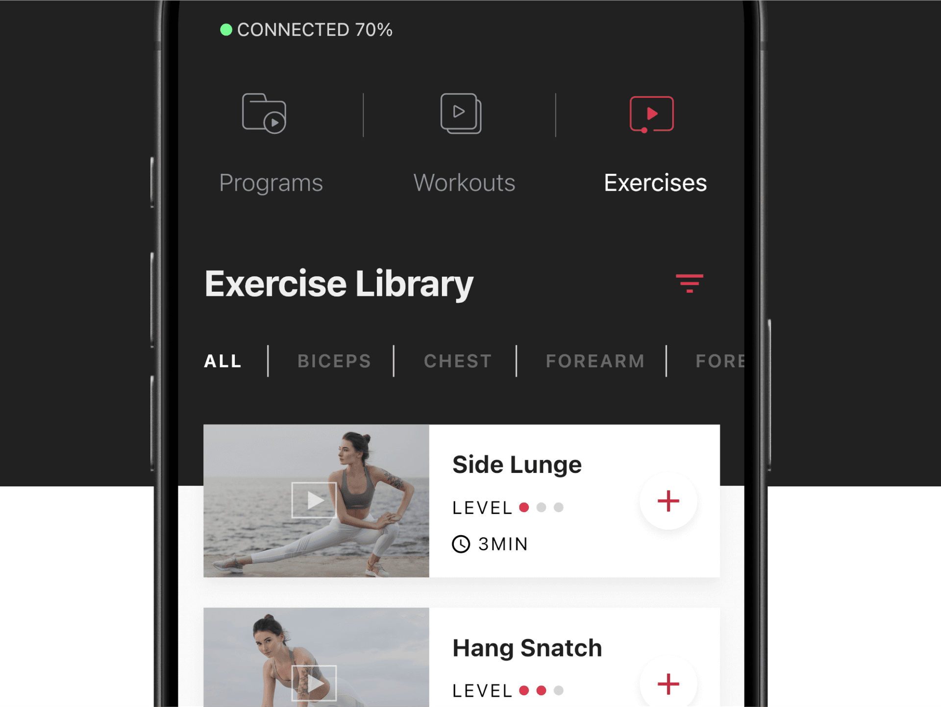The app, combined with built-in sensors, offers real-time feedback and tailored workouts, adapting to individual needs.